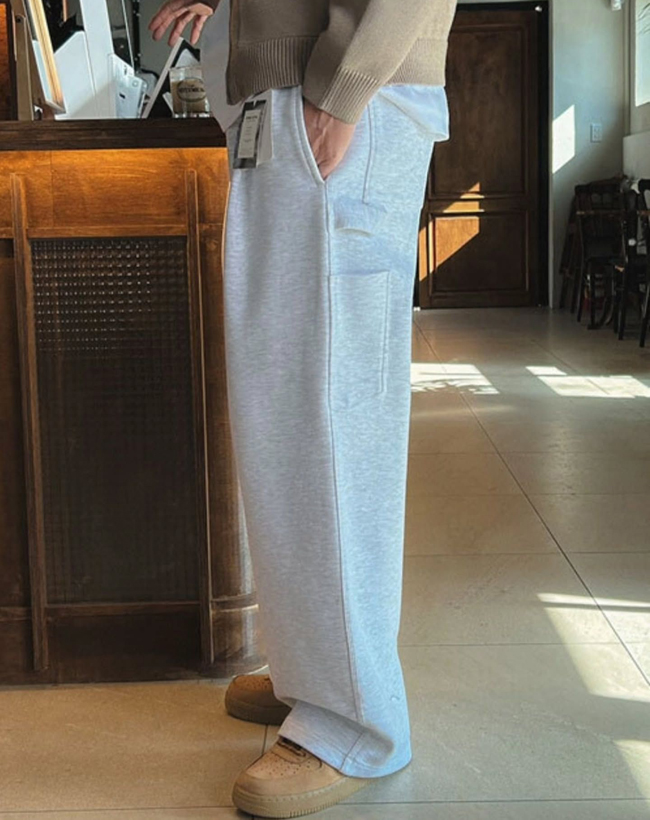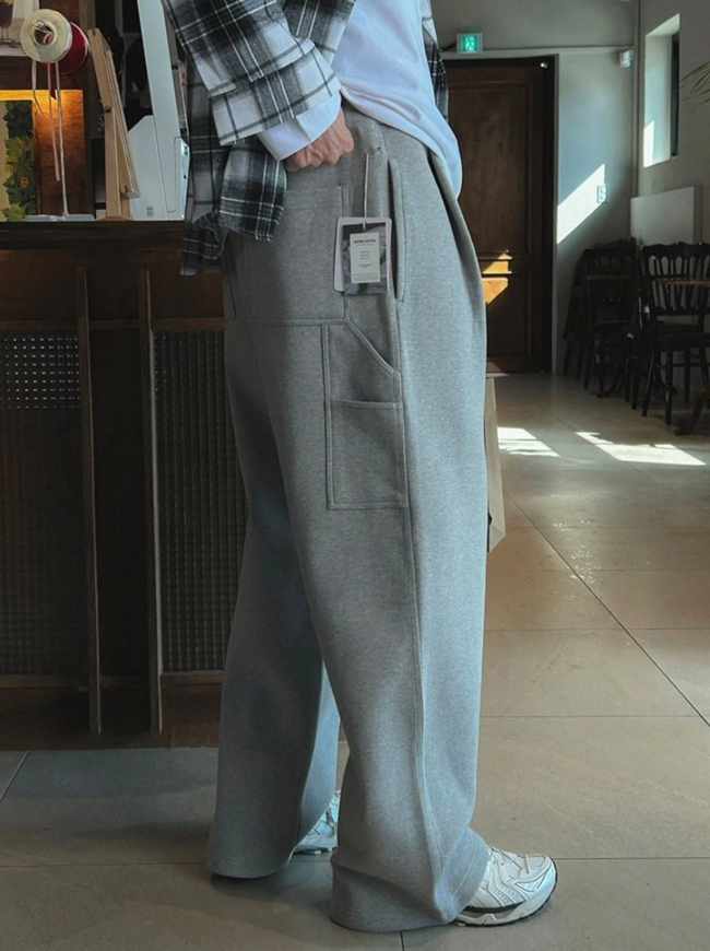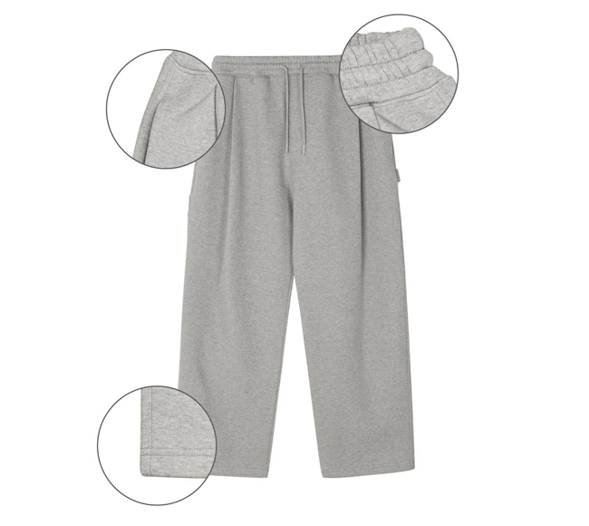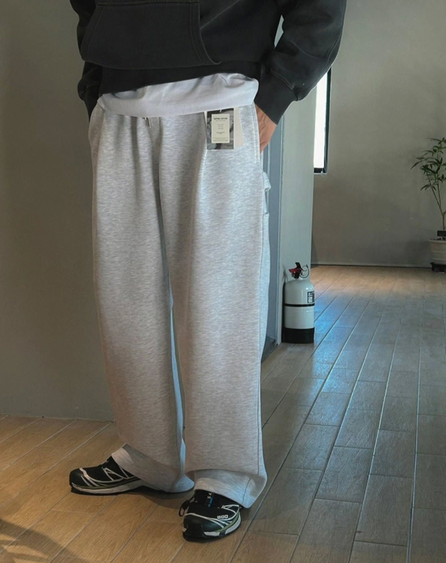 Designed in a real wide fit with a comfortable feel and a moderately relaxed silhouette, offering a fit optimized for minimal daily styling. Featuring an elastic waist for a relaxed fit and a drawstring for effortless size control. Enhanced fabric resilience to prevent knee stretching. The high-density premium fabric is treated with tumble and enzyme processing to minimize shrinkage after washing.