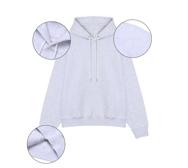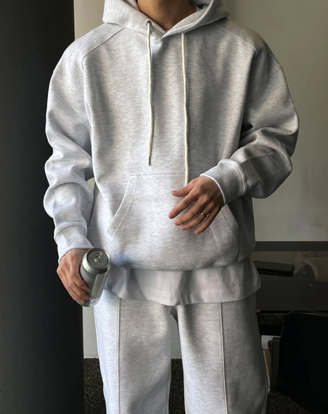 Designed in a semi-oversized line with structured shoulder and back panels, this hoodie provides a clean, sophisticated look with simple, comfortable wear. The high-density premium fabric is treated with tumble and enzyme processing to minimize shrinkage after washing.