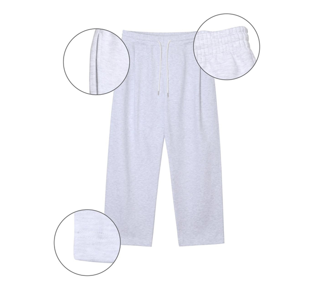 Featuring an elastic waist for a relaxed fit and a drawstring for effortless size control. Enhanced fabric resilience to prevent knee stretching.