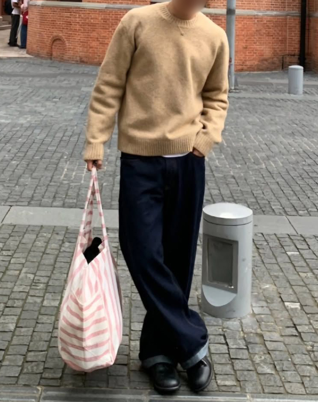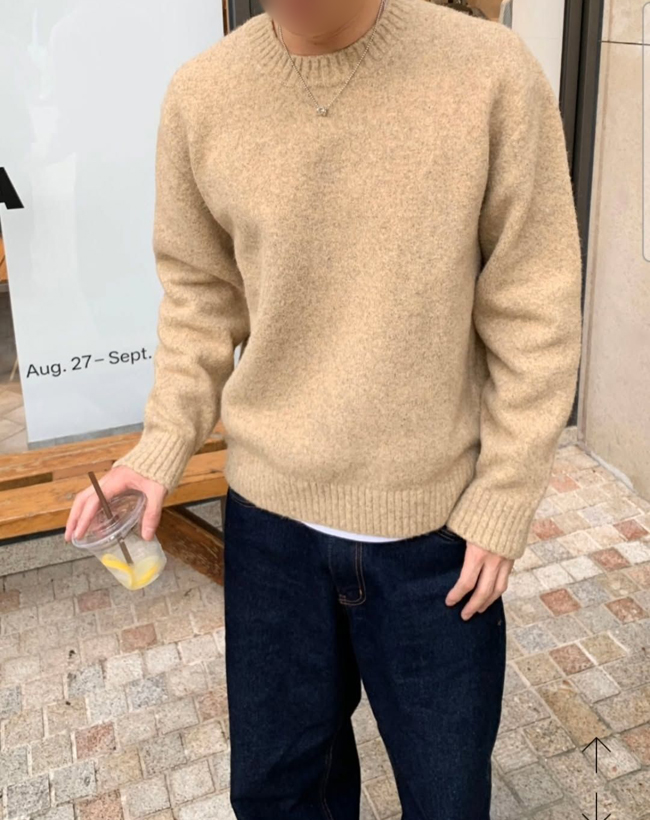 Designed with a minimal look and basic plain knit structure, this knitwear features a loose silhouette that creates the effect of broader shoulders. The body and sleeve ribs are knitted with premium spandex yarn for tension and resilience, ensuring a firm shape that won’t stretch out even after long wear. To prevent gaping at the side neck, precise knitting techniques and linking stitch are applied, creating a stable, high-quality round neckline with a clean silhouette. With a comfortable fit and a slightly relaxed silhouette, this piece is perfect to wear on its own during transitional seasons or as an inner layer under jackets and coats in winter.