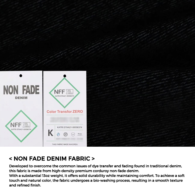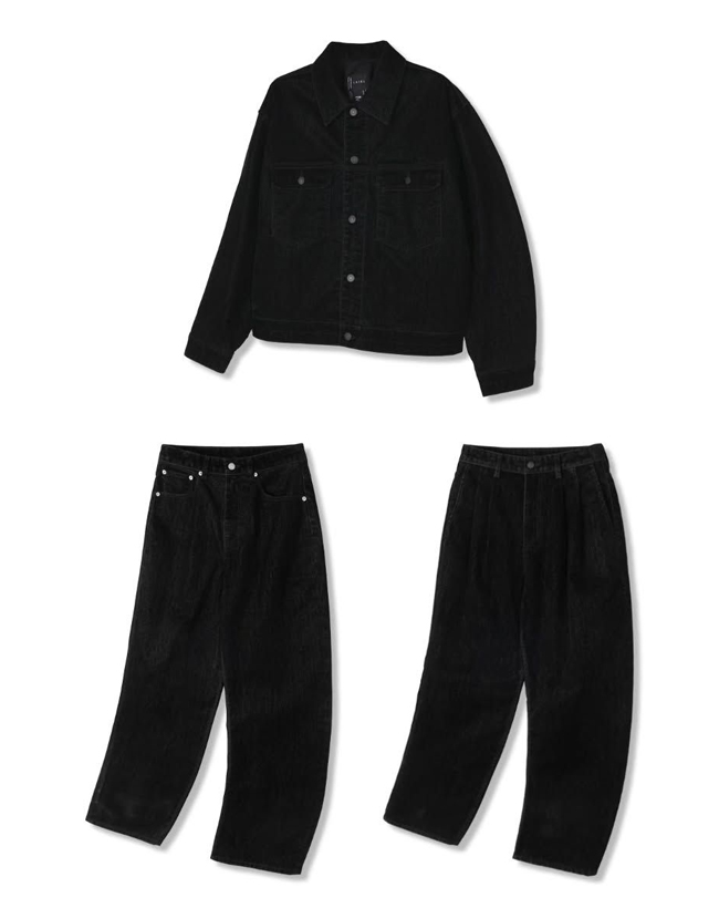 * The velvet denim jacket can be styled as a set with the velvet denim pants or velvet two-tuck denim pants.