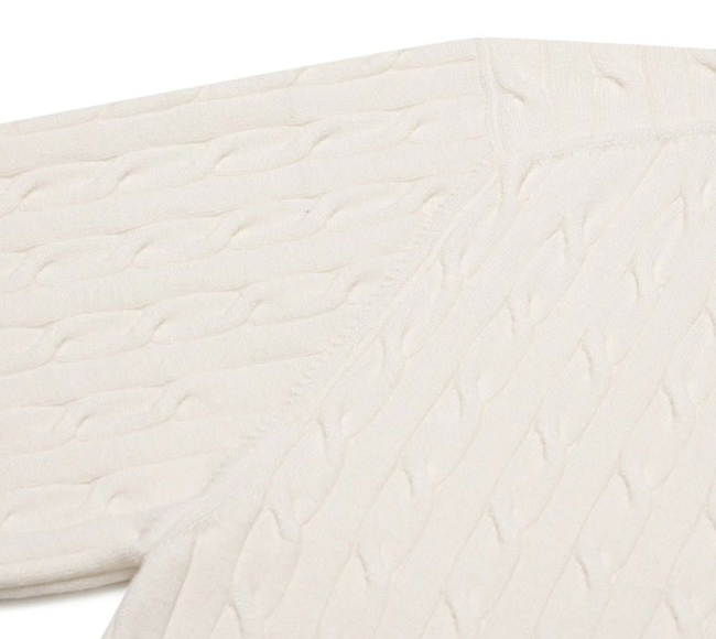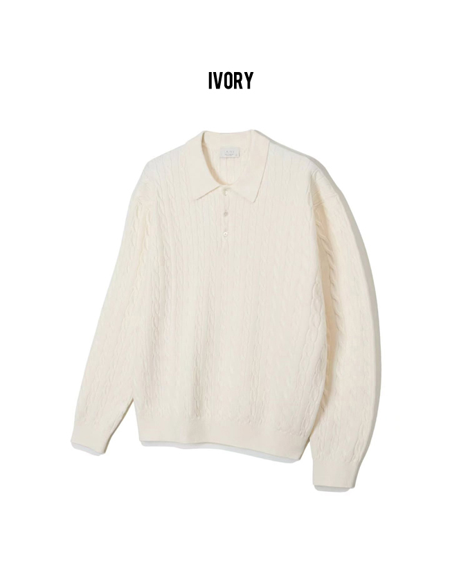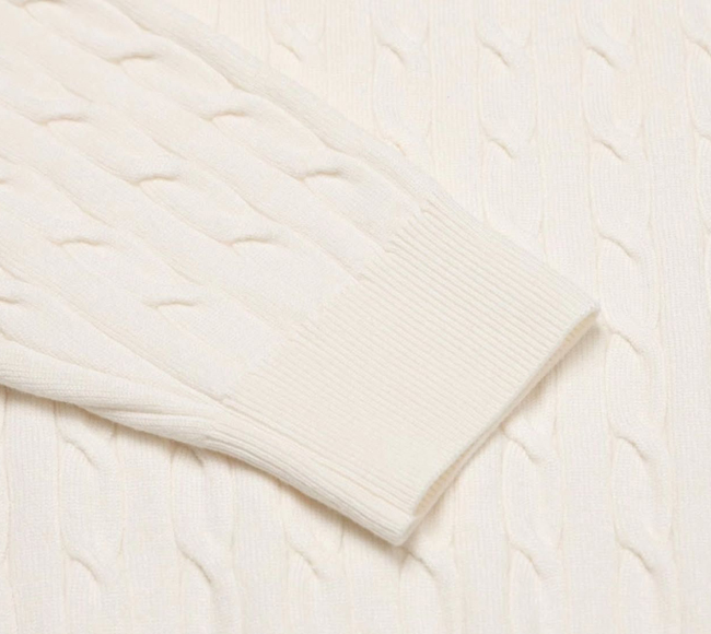Designed with a minimal look and basic cable knit pattern, this knitwear features a loose silhouette that gives the effect of broader shoulders.