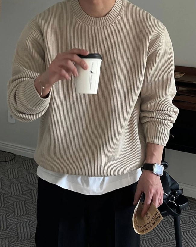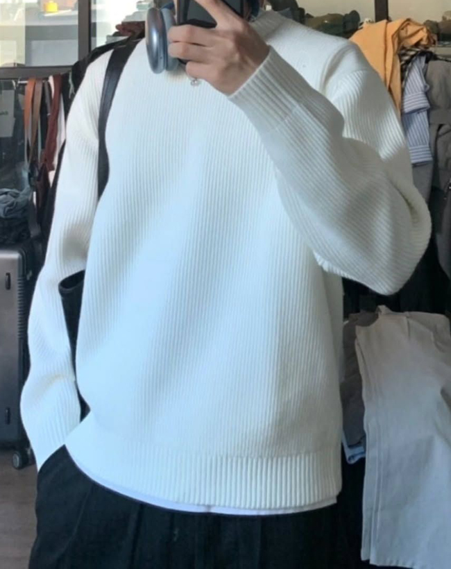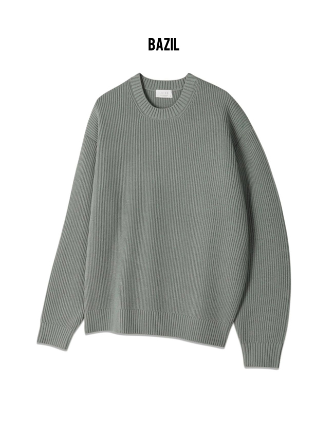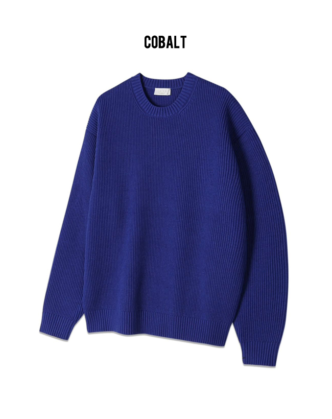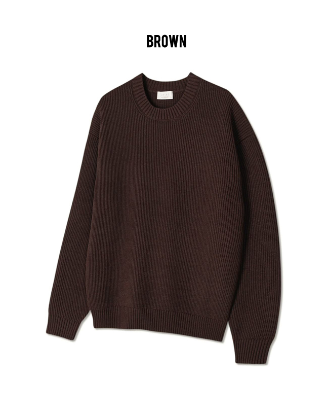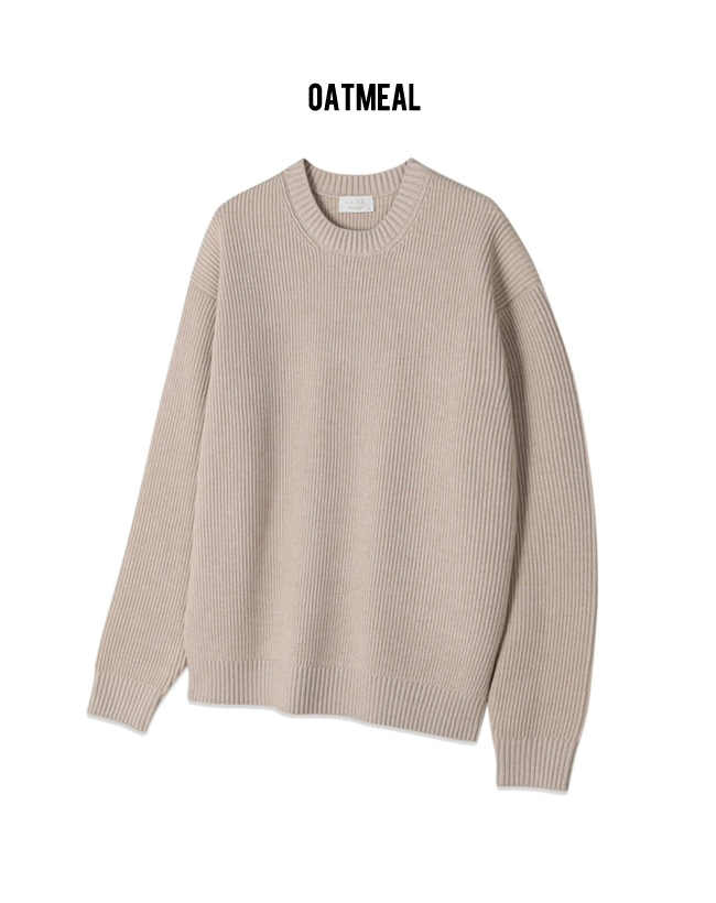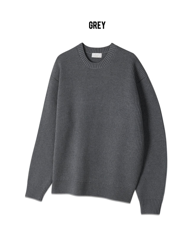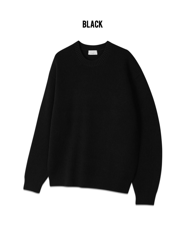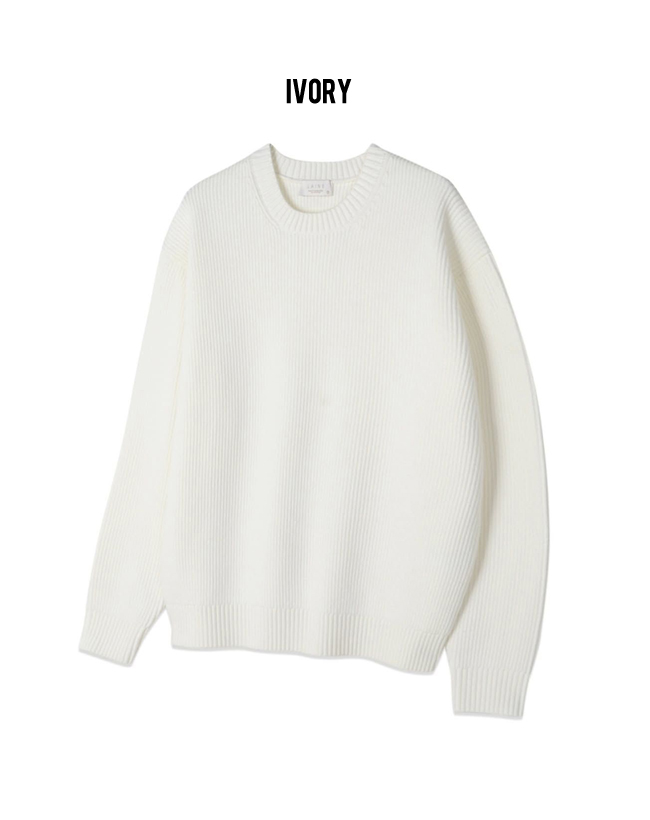 Designed with a minimal look and basic rib knit texture, this knitwear features a loose silhouette that gives the effect of broader shoulders.
