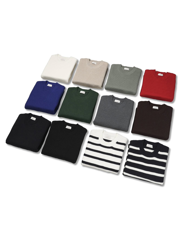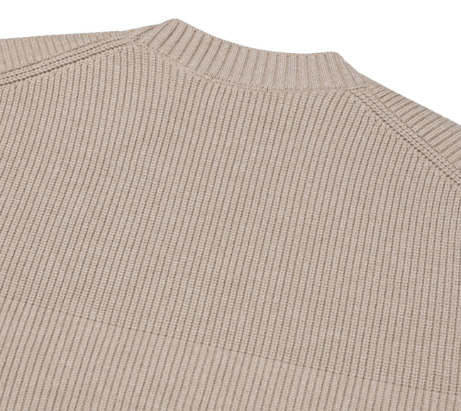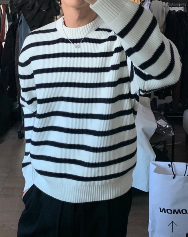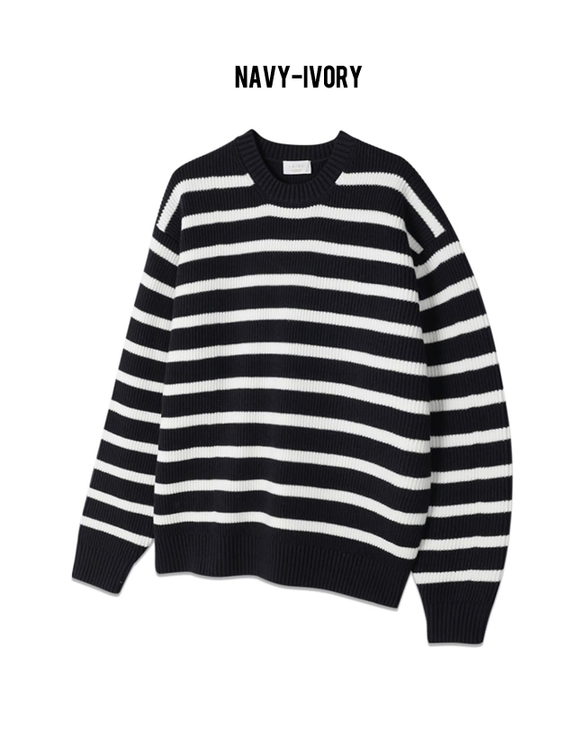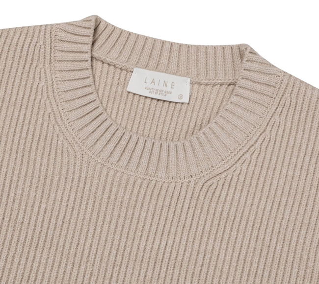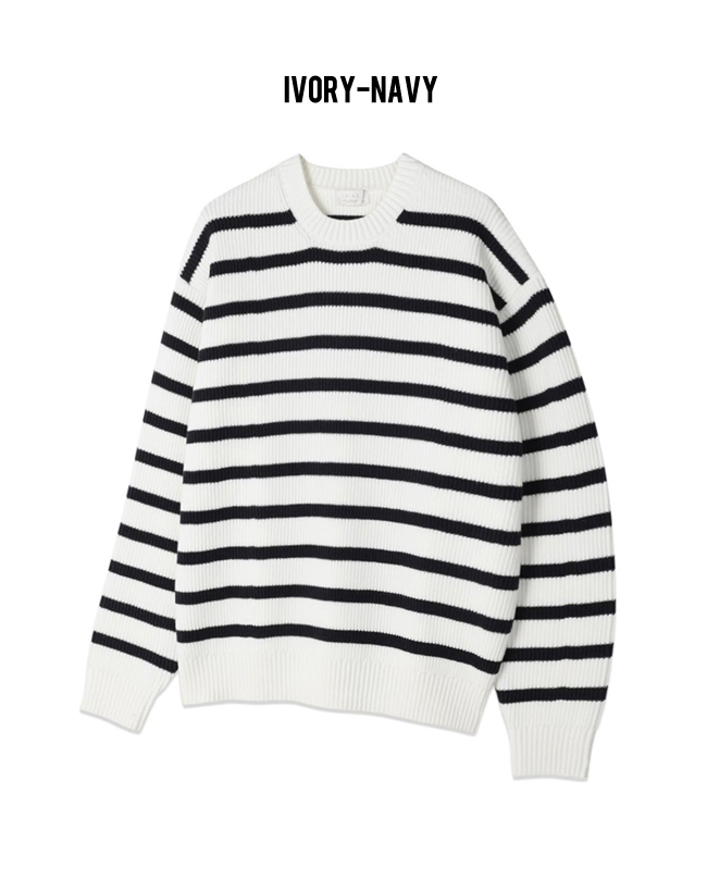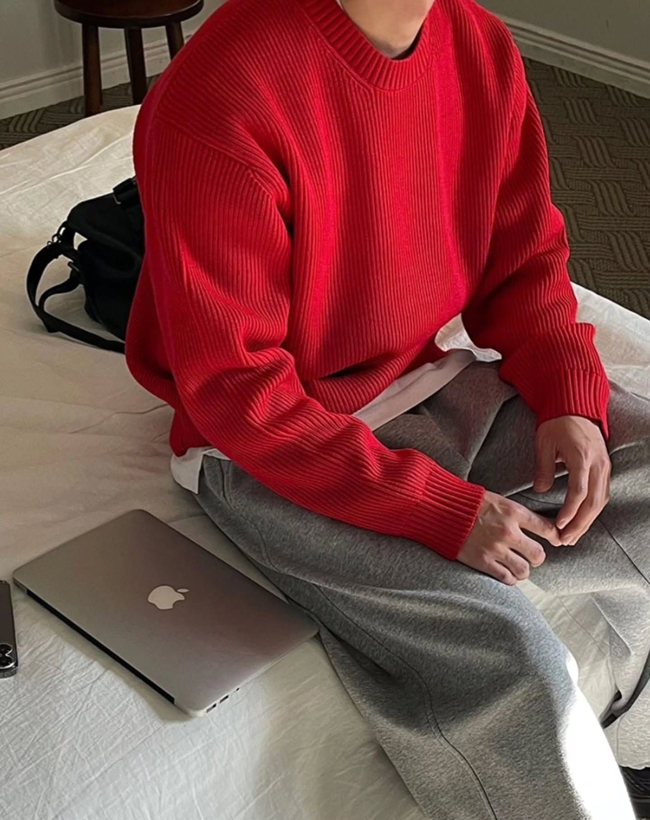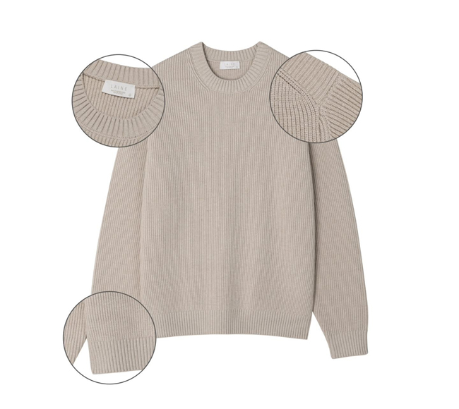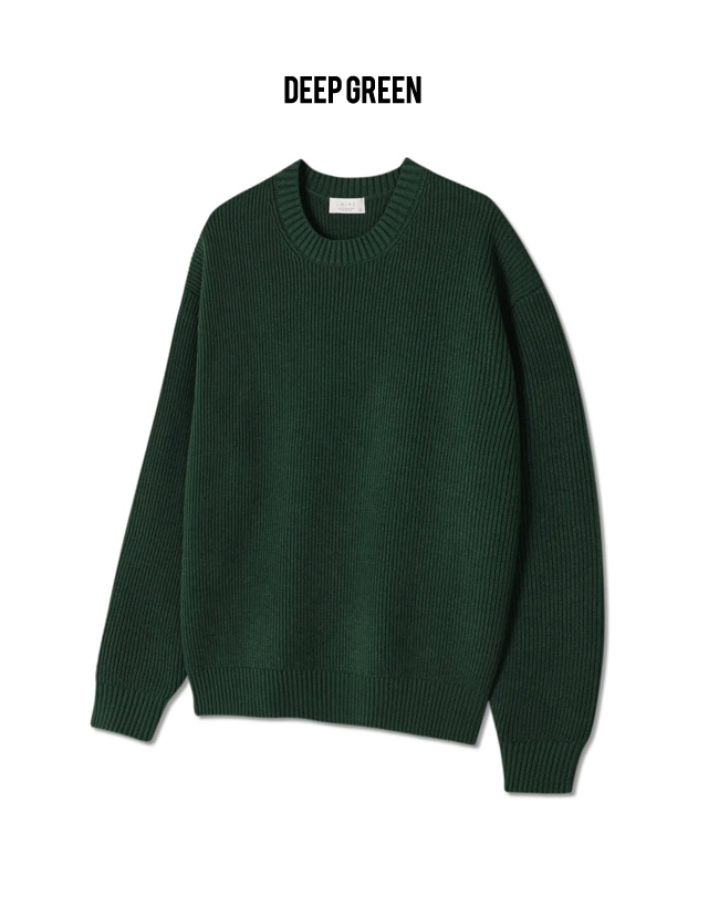 Designed with a minimal look and basic rib knit texture, this knitwear features a loose silhouette that gives the effect of broader shoulders.