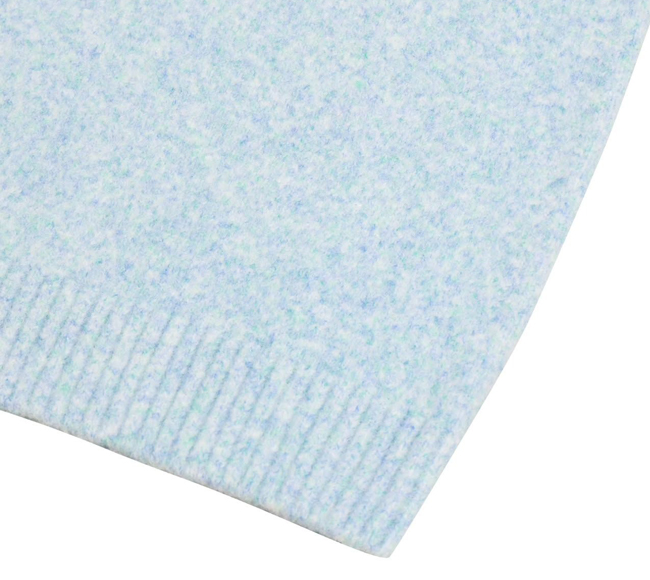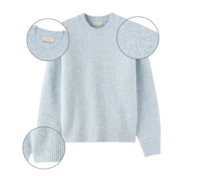 To prevent gaping at the side neck, precise knitting techniques and linking stitch are applied, creating a stable, high-quality round neckline with a clean silhouette.