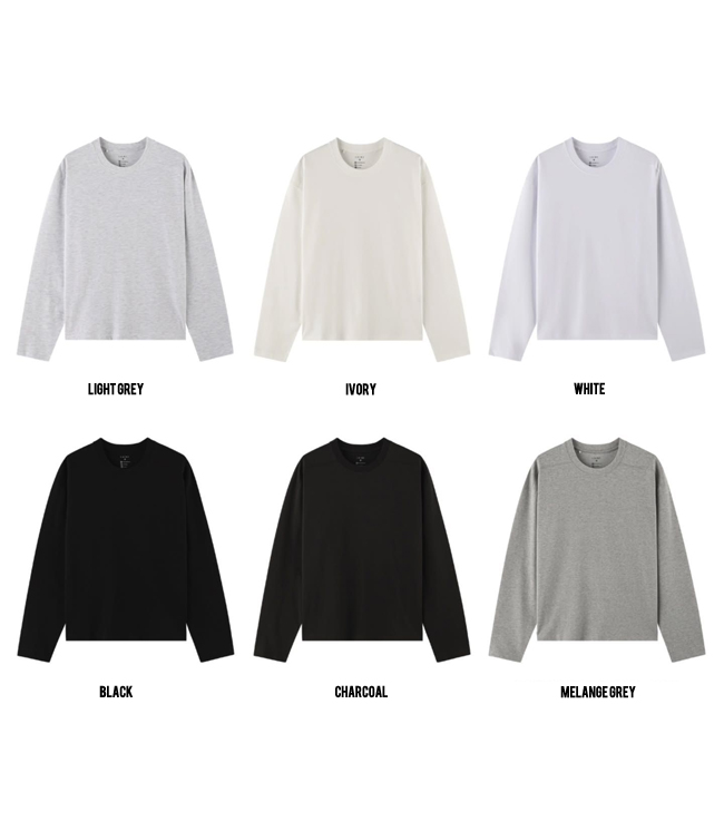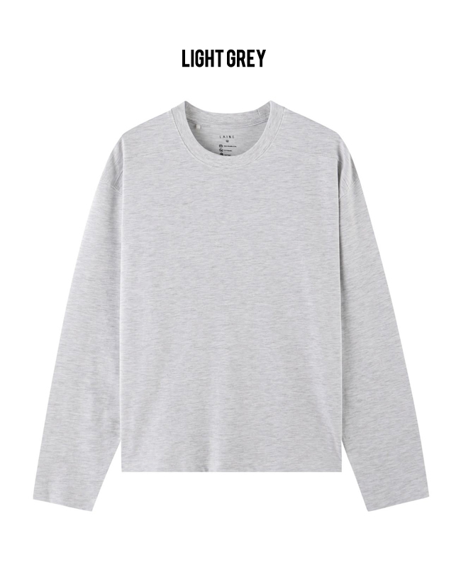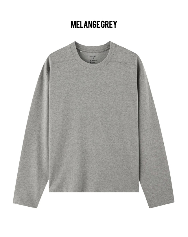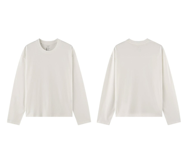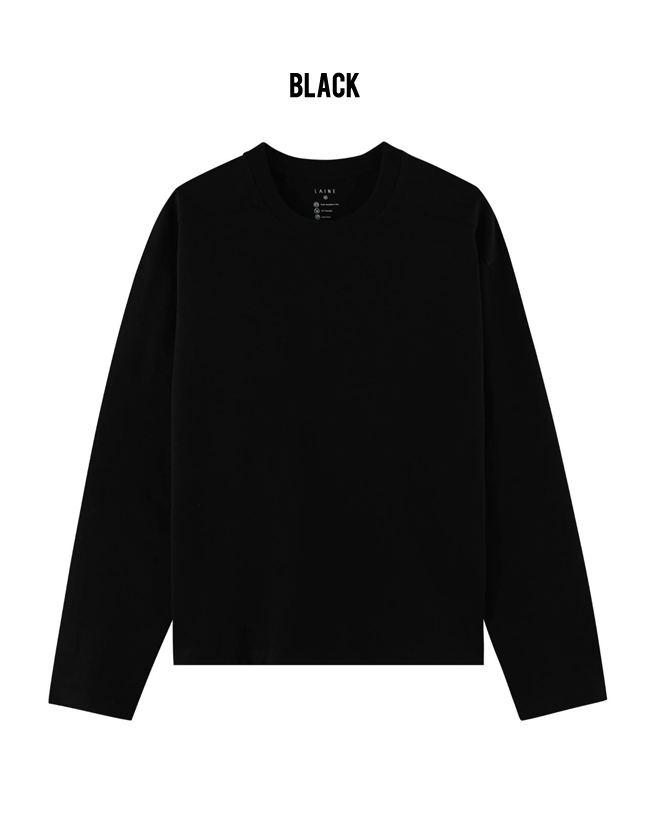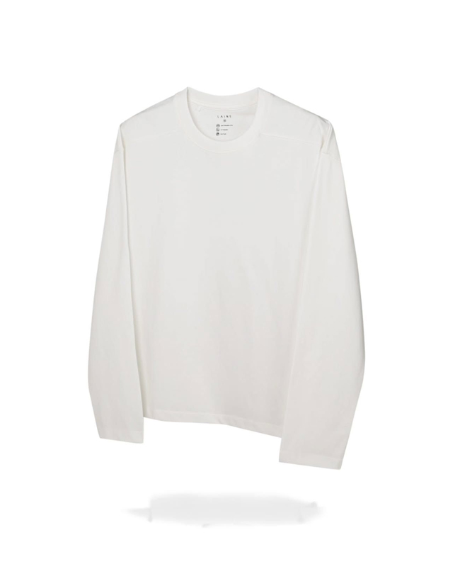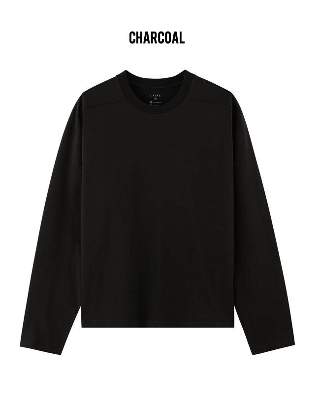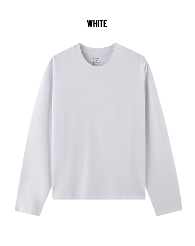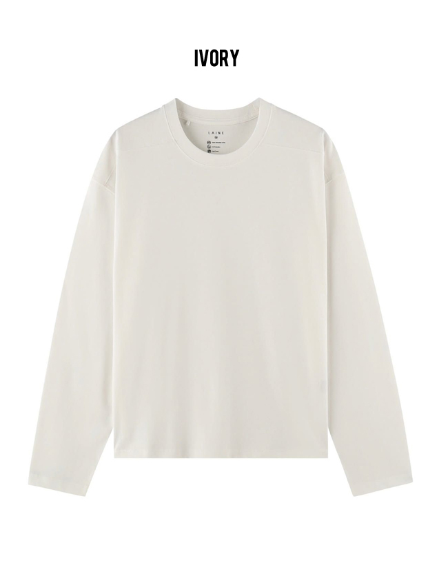 The semi-crop long-sleeve T-shirt is made with a special ammonia treatment that provides excellent shape recovery, eliminating wrinkle concerns and making it easy to care for.