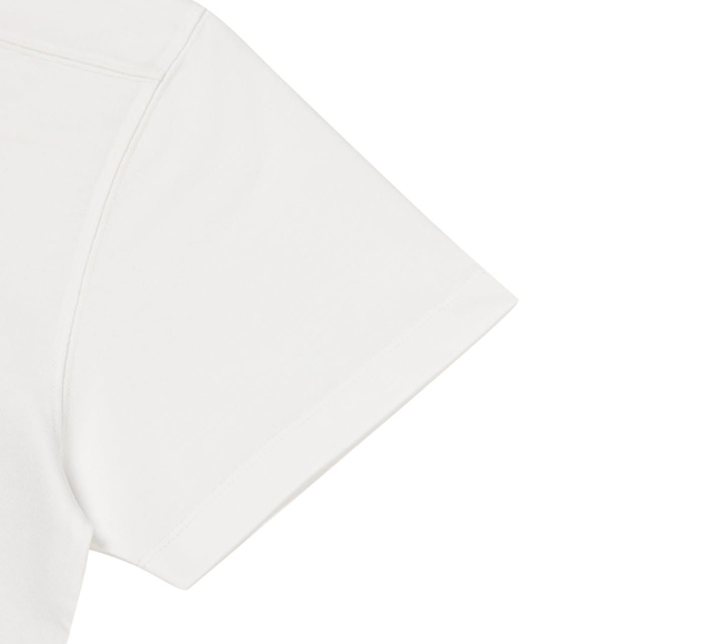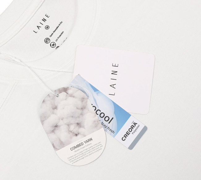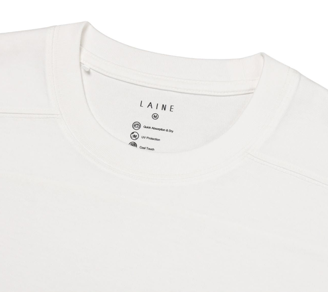 The semi-crop short-sleeve T-shirt is made with a special ammonia treatment that provides excellent shape recovery, eliminating wrinkle concerns and making it easy to care for.