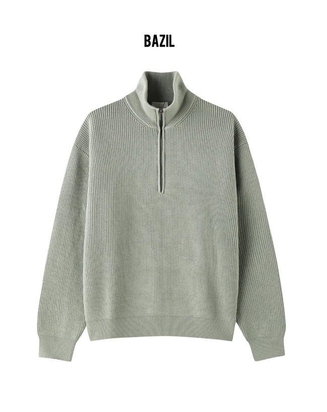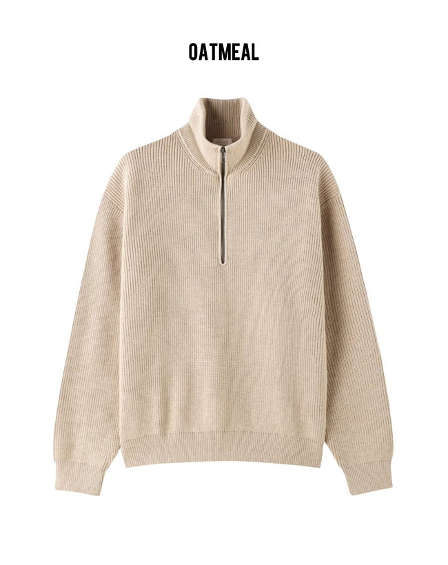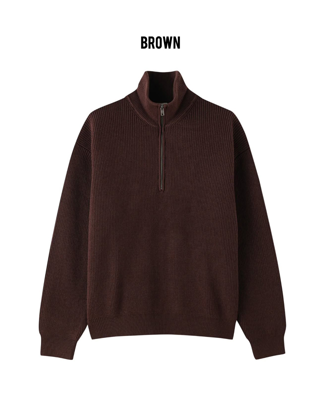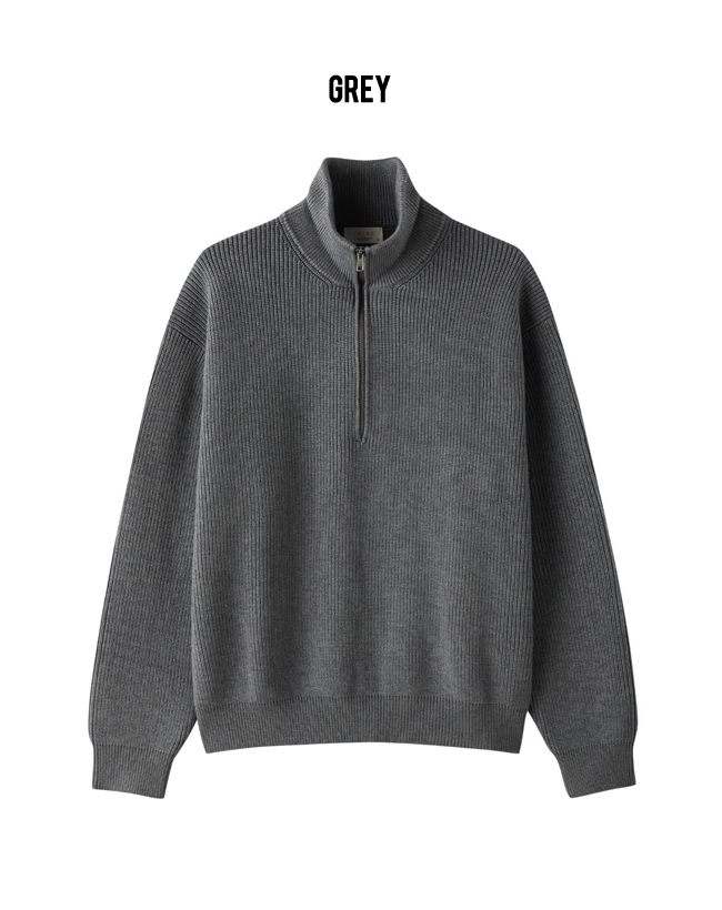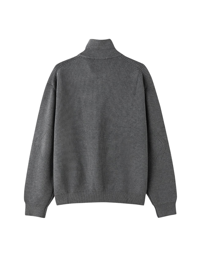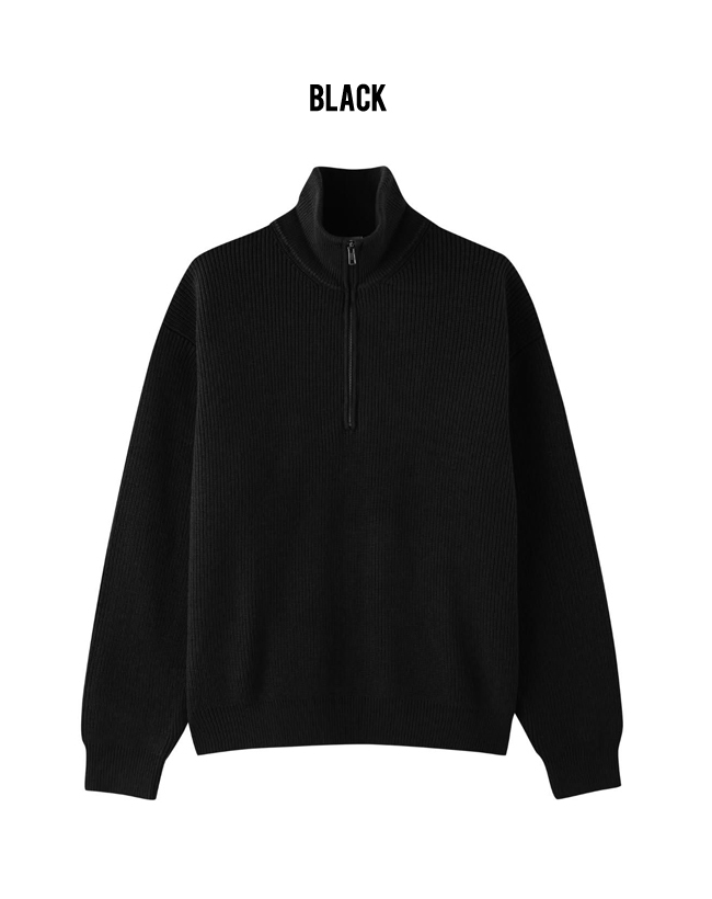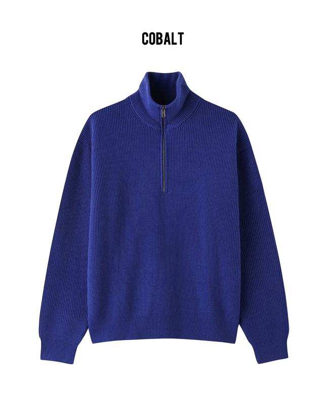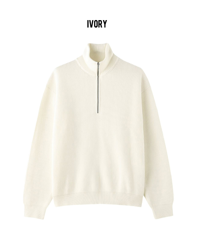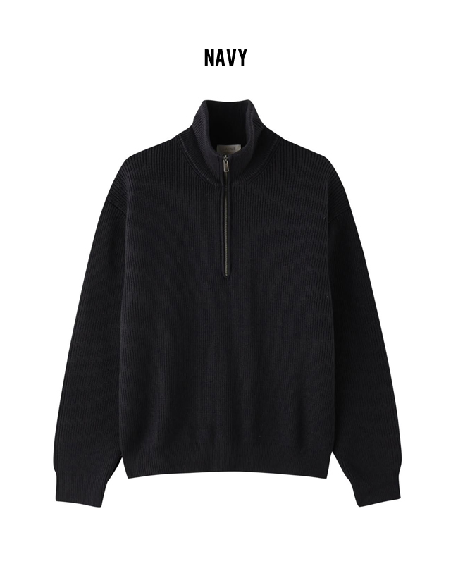 Designed with a minimal look and basic half-rib knit, this knitwear features a loose silhouette that creates the effect of broader shoulders