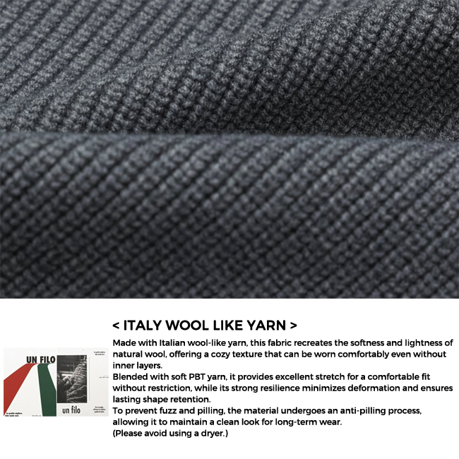 Premium spandex yarn is knitted into the body and sleeve ribs for tension and resilience, ensuring a firm fit that won’t stretch out even after long wear.