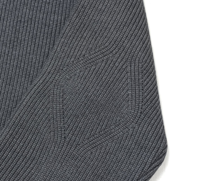 o prevent gaping at the turtleneck, precise knitting techniques and linking stitch are applied, creating a stable, high-quality collar line with a refined silhouette.