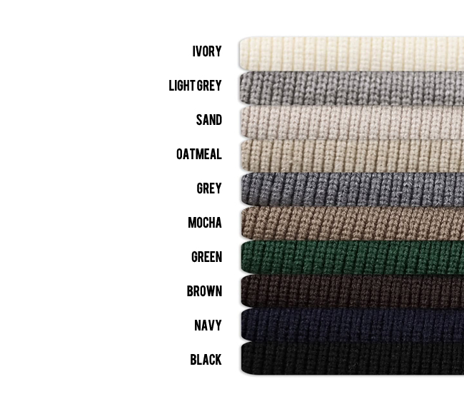 Premium spandex yarn is added to the neckline, body rib, and sleeve rib for tension and resilience, ensuring a firm shape that won’t stretch out even after long wear
