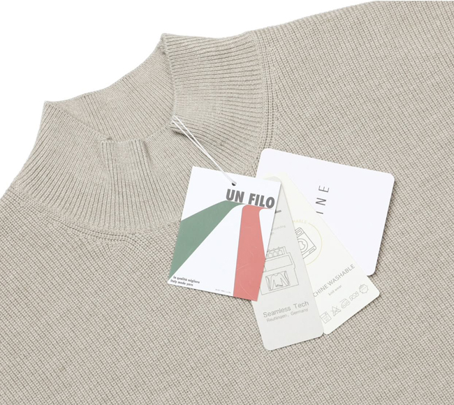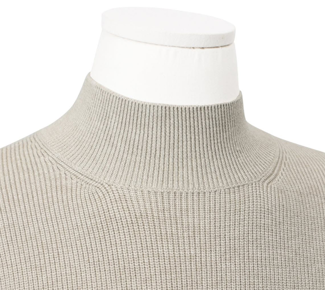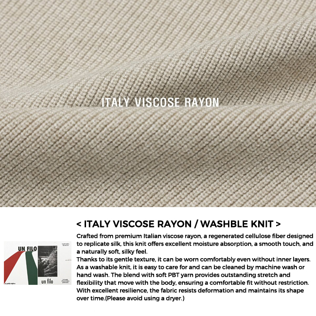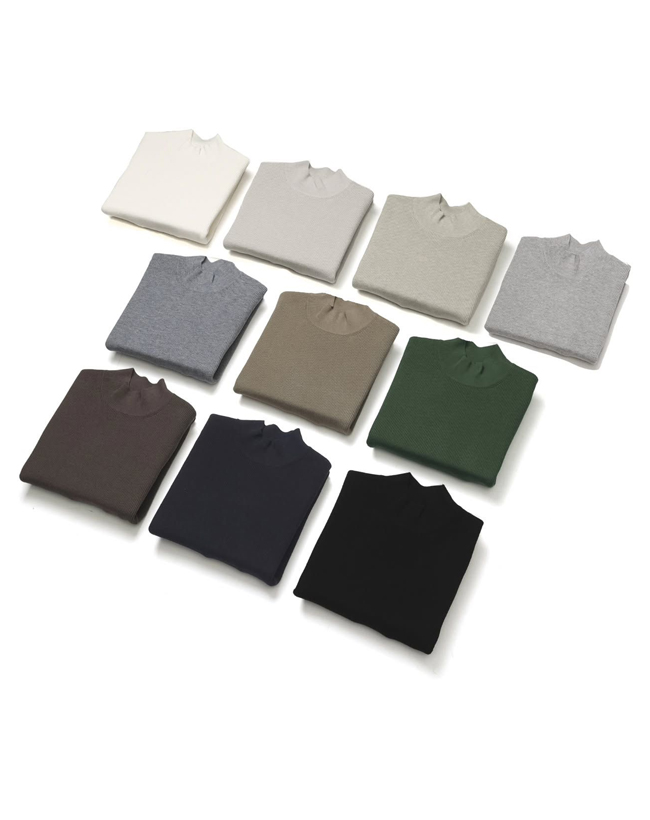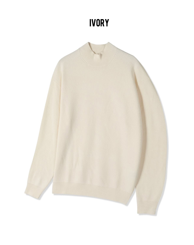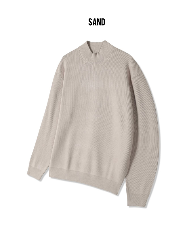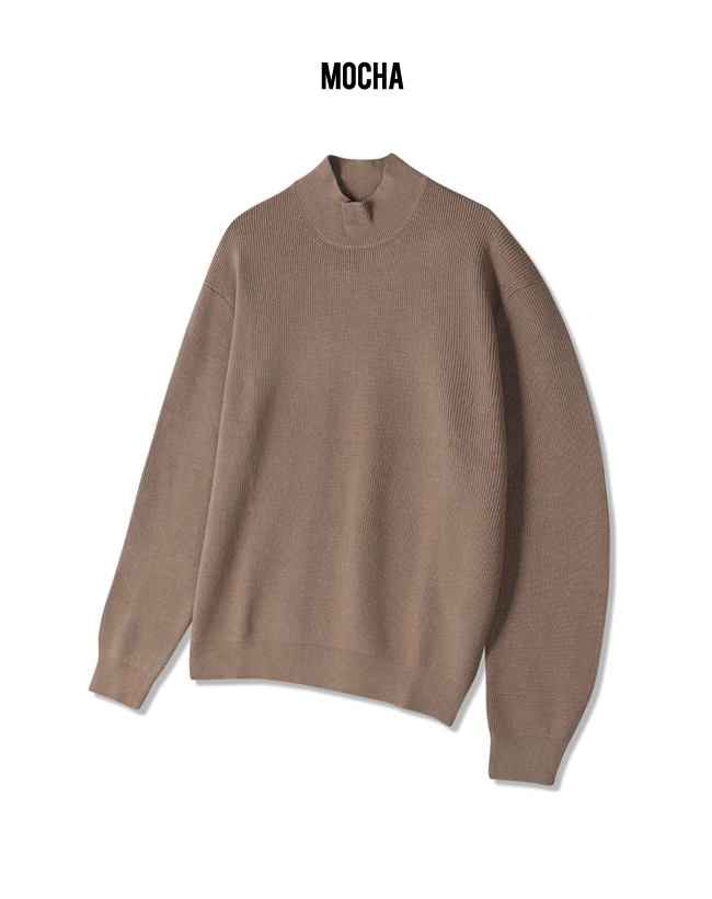 To prevent gaping at the side neck, this piece is crafted with precise knitting techniques and linking stitch, creating a stable, refined turtleneck line with a clean silhouette.