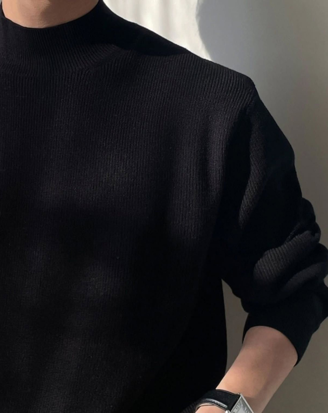 Designed in a standard fit, perfect for layering under jackets and coats. Designed with a minimal style and basic rib knit, it comes in a loose fit that creates a wider shoulder effect.